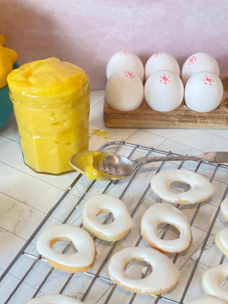 Using a spoon, fill the hole in the top cookie with more lemon curd, making sure not to overfill it.